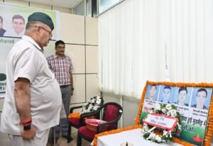 कैंप कार्यालय में जम्मू के डोडा में आतंकियों के साथ मुठभेड़ के दौरान शहीद हुए अमर बलिदानियों को श्रद्धासुमन सैनिक कल्याण मंत्री गणेश जोशी ने किये अर्पित